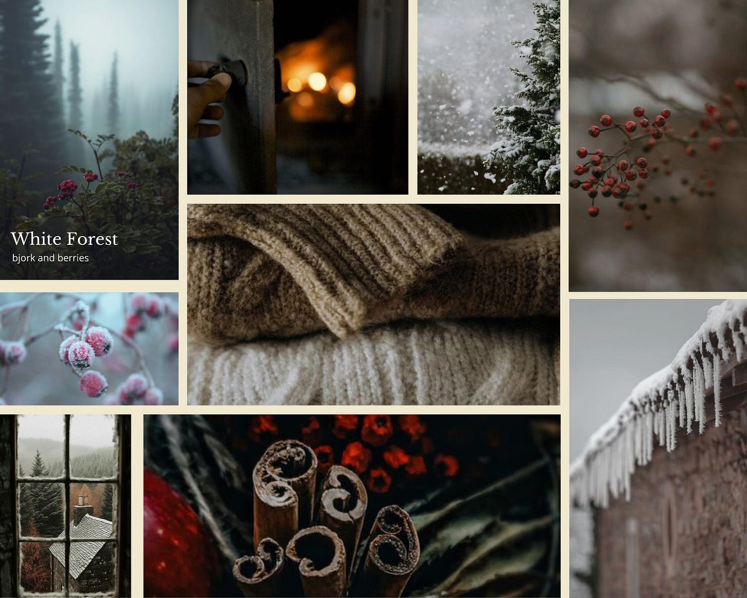 White Forest is acorn fairies in white chocolate chip caps and woolen mittens. They stomp their tiny feet through snow-dusted woods, foraging for red berries and pinecones. Puffs of breath like cotton balls hover above the forest floor, below towering pine trees. Their laughter rings like icicles suspended in cold air.